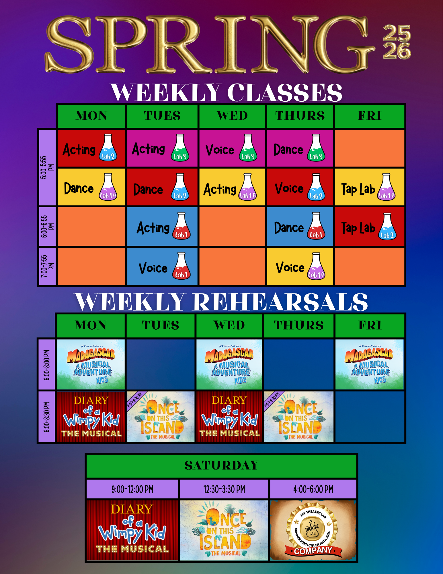 Singing, dancing, or acting seem like difficult tasks on their own - but combining all three? You’re up to the challenge, and Northwest Theatre Lab provides the tools you need, every step of the way. Here, you will be taught by industry-leading professionals as you hone your theatrical talents. Did we mention the best part? YOU get to perform live, onstage through our Broadway-style productions. Lab-classes are the perfect way to get that standing ovation!